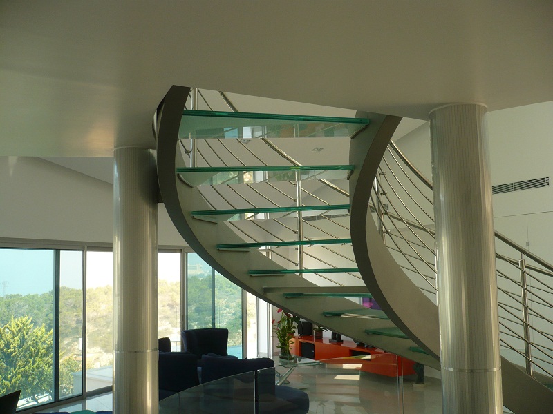 והזכוכית, וכן מתכת ואבן טבעית או קרמיקה. ניתן להציב את המדרגות הפנימיות הן לאורך הקיר או במרכז החלל. הן יכולות להיות